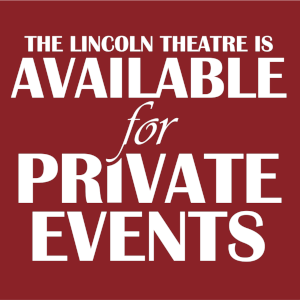 The Lincoln Theatre is a multi-use facility, offering the community the opportunity to present live performances, private movie screenings, weddings, conferences, memorial services, and fundraiser events.